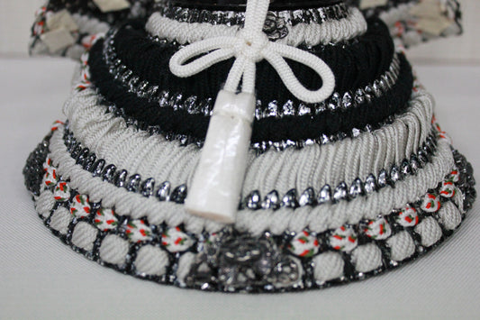 IDOMU!シリーズ 工房武久オリジナル飾り 兜08号 白糸ネズミ中黒縅 箔散らし