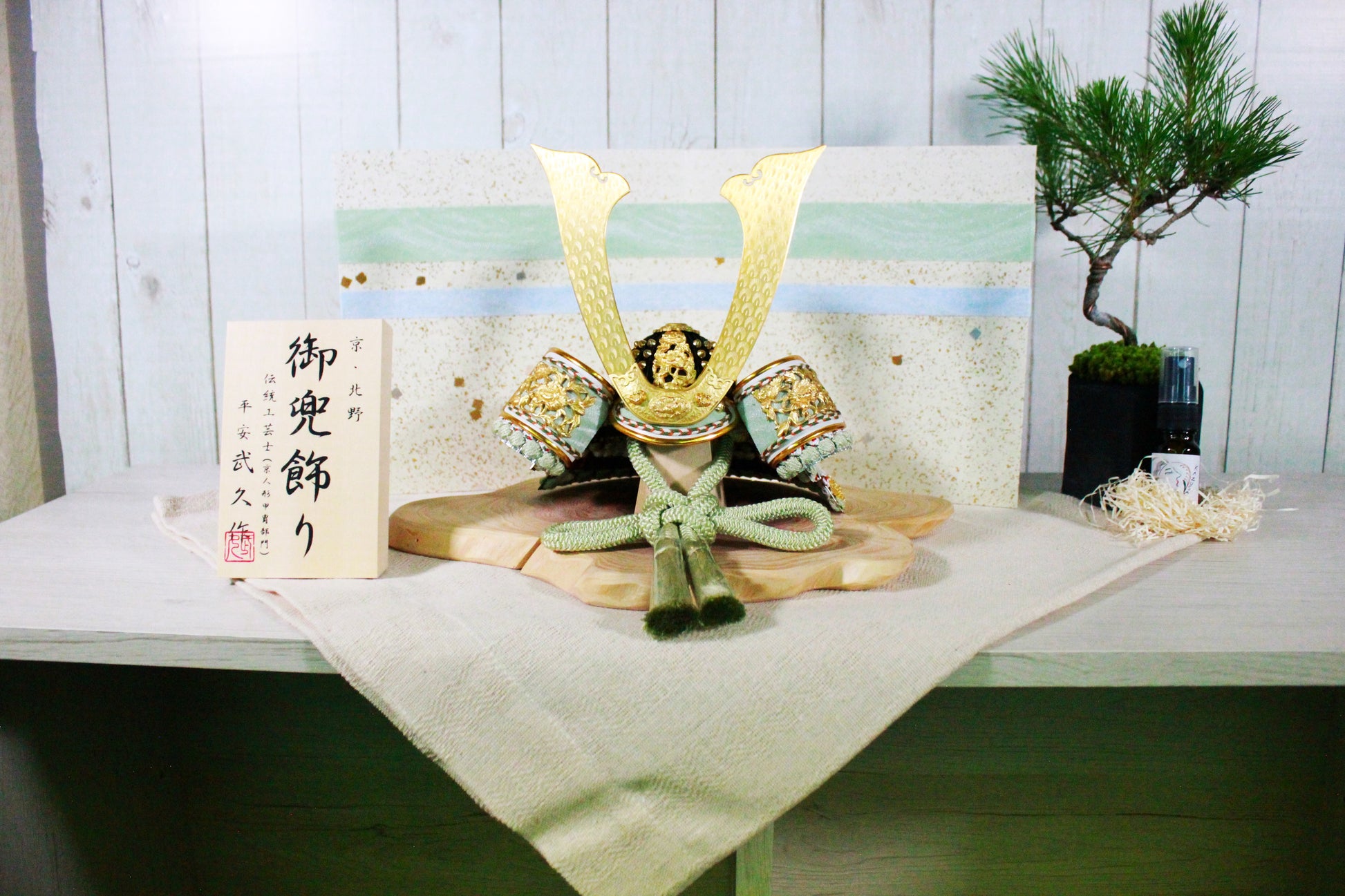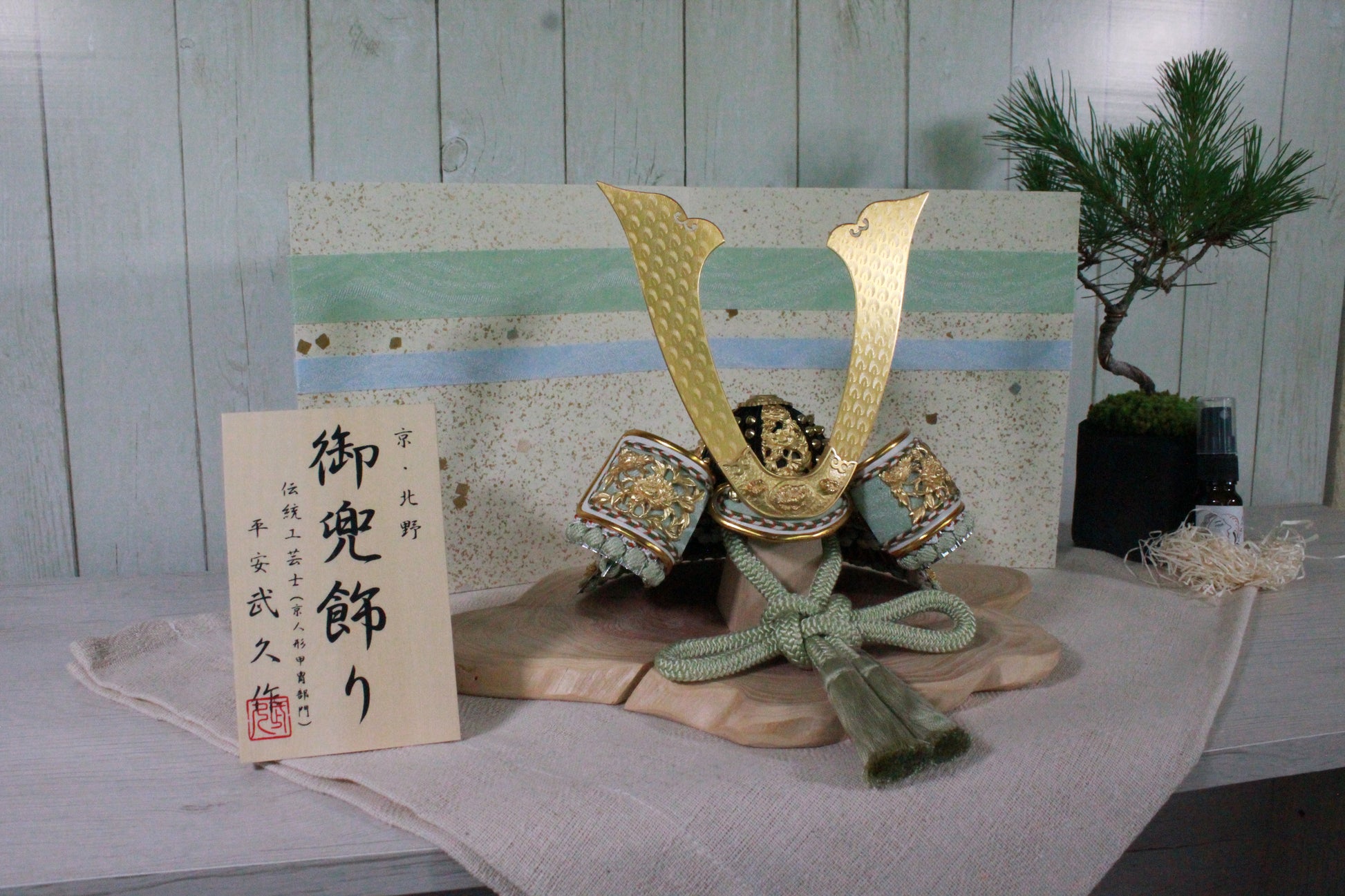 IDOMU!シリーズ 工房武久オリジナル飾り 兜08号 グリーン白糸段々縅