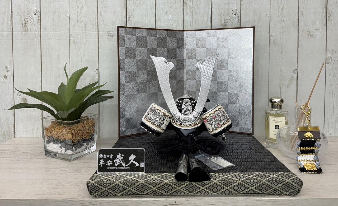 家具の上や、玄関口にも飾れる兜飾りシリーズ。