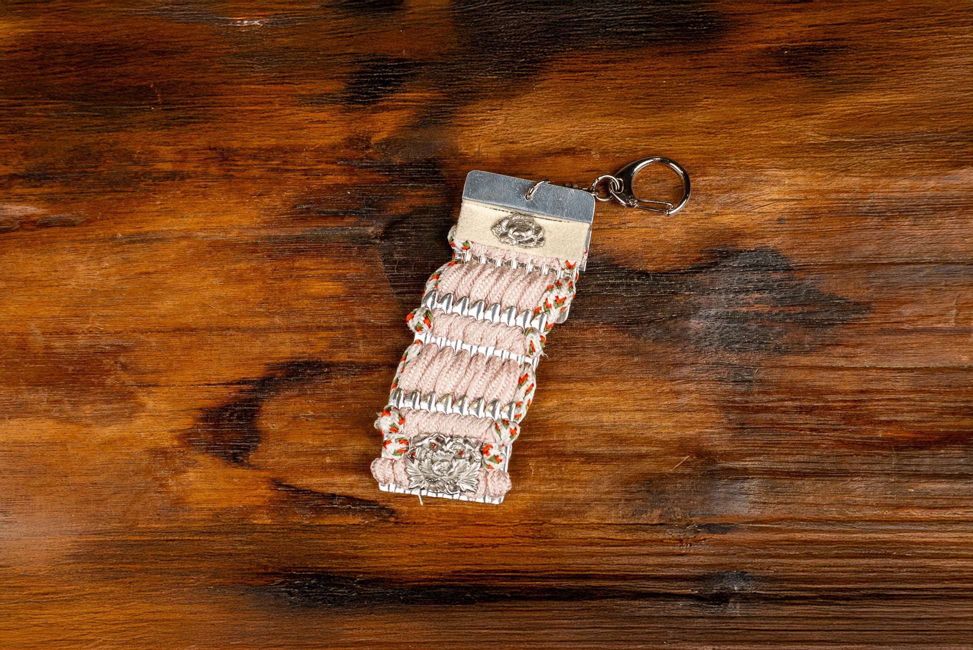 大鎧の「栴檀板(せんだんいた)」をモチーフにした身近に持てるIDOMU!キーホルダーを伝統工芸が真心こめて制作しました!甲冑の中でも、胸部を守る大事な装備であるパーツです。この栴檀の板は、京甲冑ならではの、本金箔・本金鍍金金具・正絹糸・本金鍍金を使用しています。