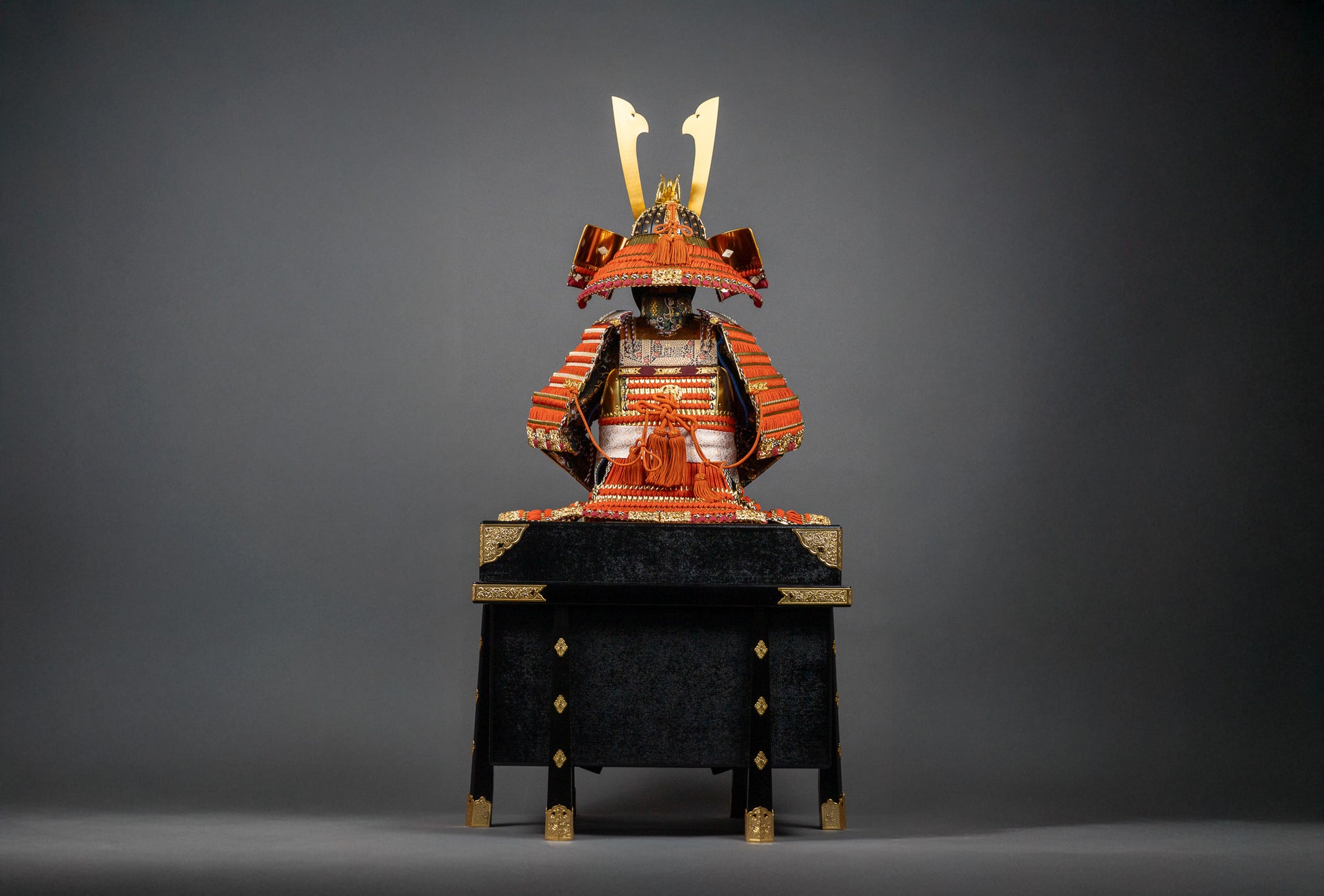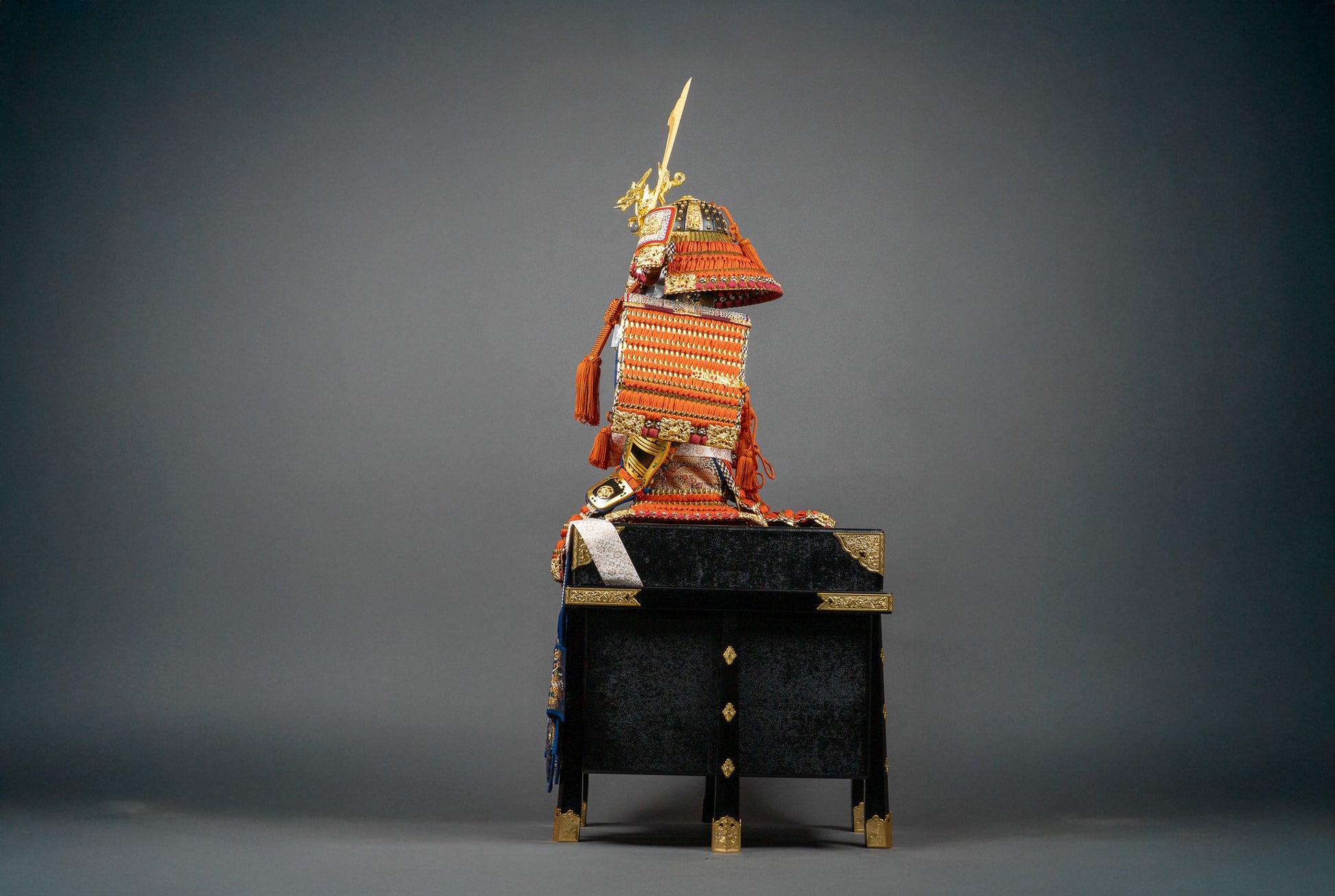 京甲冑では、美しさを左右する縅(おどし)という紐を通す作業の他、仕上げや下仕事でも非常に細かい部分が数多く、技術を用いた大鎧です。