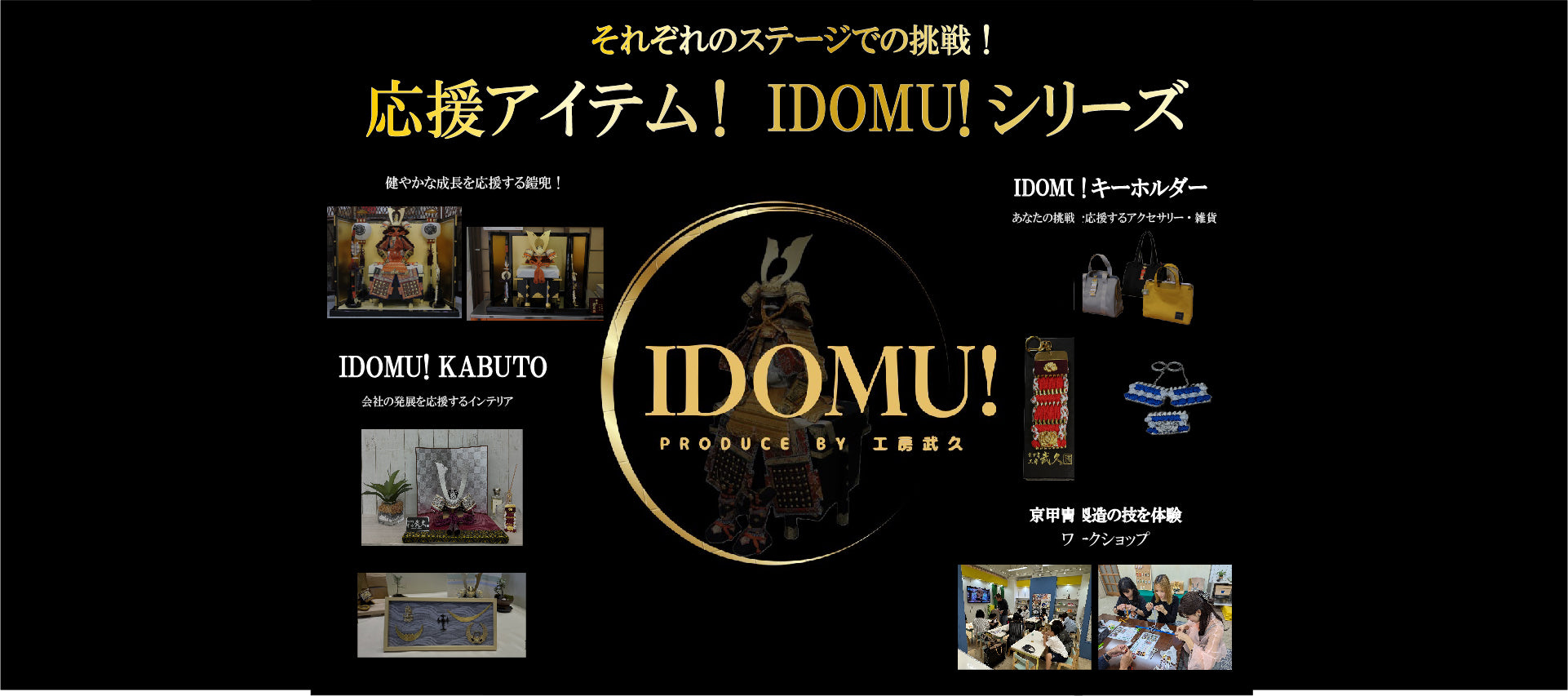 そこで、端午の節句で多くの方に親しまれている五月人形(鎧・兜)を造り続けてきた京都の伝統工芸士「京甲冑 工房武久」が、普段の生活で楽しく利用いただきながら皆様の挑戦(チャレンジ)を応援するアイテムとして、このたび新たに「挑む!(IDOMU!)」を甲冑製造の技術を活かしたアイテムを企画開発しました。